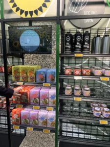 There was a notable trend towards more sustainable solutions across the board, including the use of refill stations, made from recycled materials, or materials from previous projects. While this approach is commendable for its eco-friendliness, there can be some challenges. For instance, sourcing product from specific suppliers can be limiting and it may be difficult to ensure a consistent supply. Nonetheless, the display of refill stations made from recycled or repurposed materials demonstrated a commitment to sustainable practices and highlighted the potential for innovative solutions to reduce waste within retail.