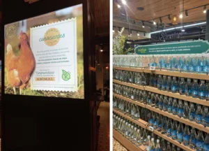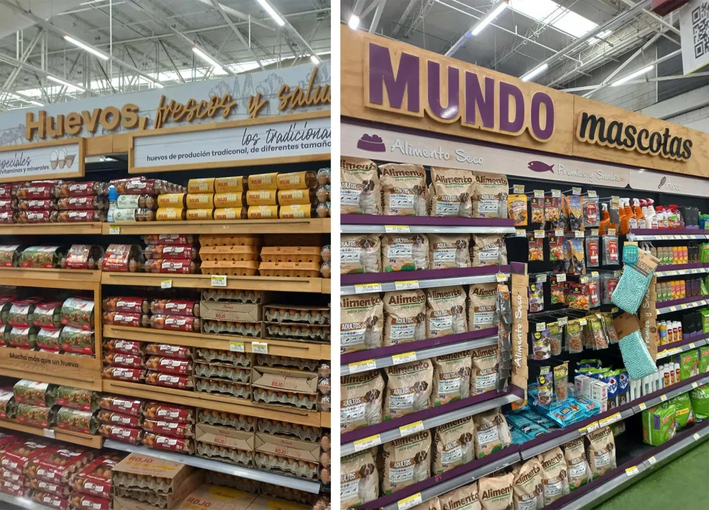 Éxito WOW clarifies its brand positioning on collective responsibility through consistent communications across the store. This hierarchy leads with robust high-level statements in key hallmarks. Theatrical moments are still happening but in a more purposeful way. Storytelling graphics help make the in-store experience more authentic and meaningful